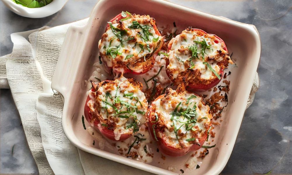 Serve your Chicken Parmesan & Quinoa Stuffed Peppers with a side of garlic bread or a fresh green salad. A drizzle of balsamic glaze adds a tangy twist.